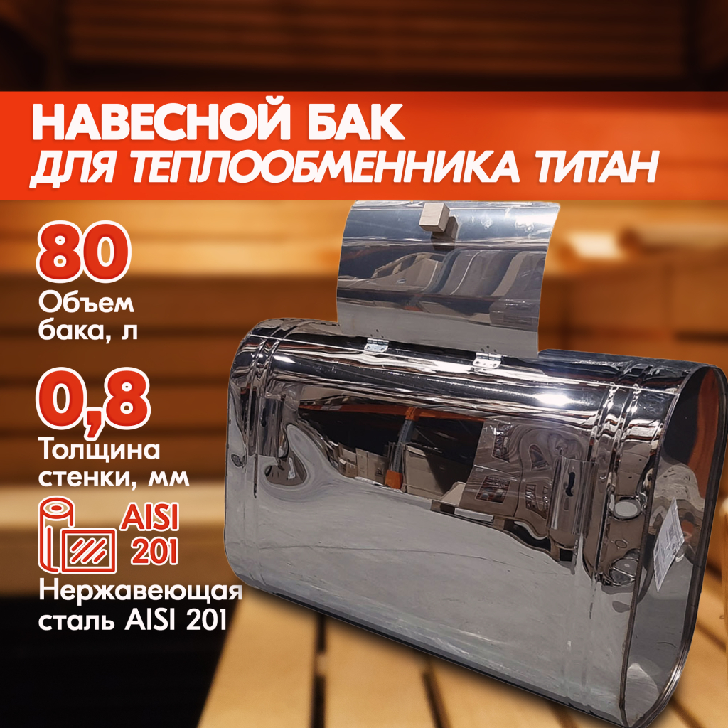 В качестве материала навесного бака для бани используется аустенитная марка стали AISI 201.