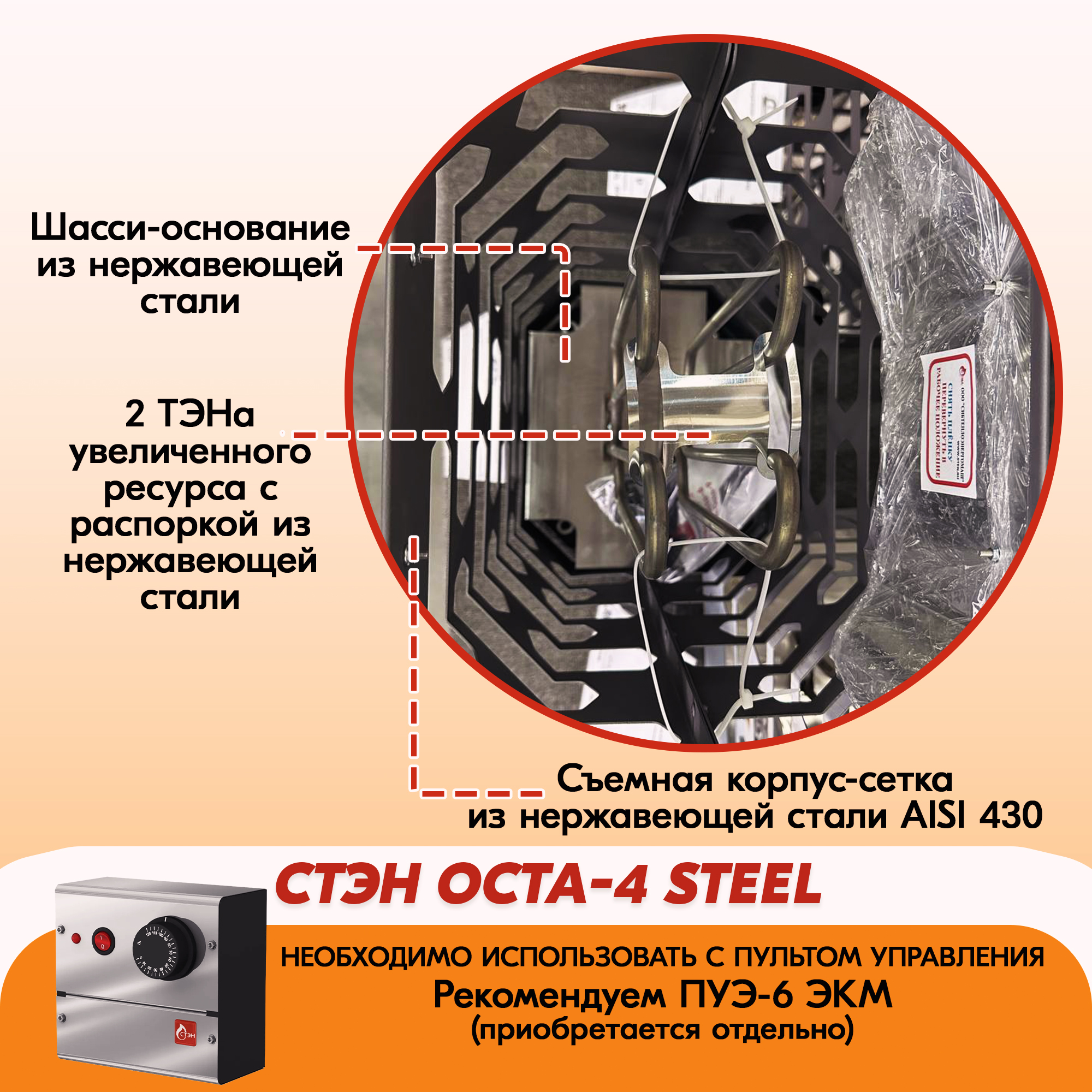 Электрическая каменка СТЭН ЭКМ 4 Octa steel в Уфе | Доставка по России