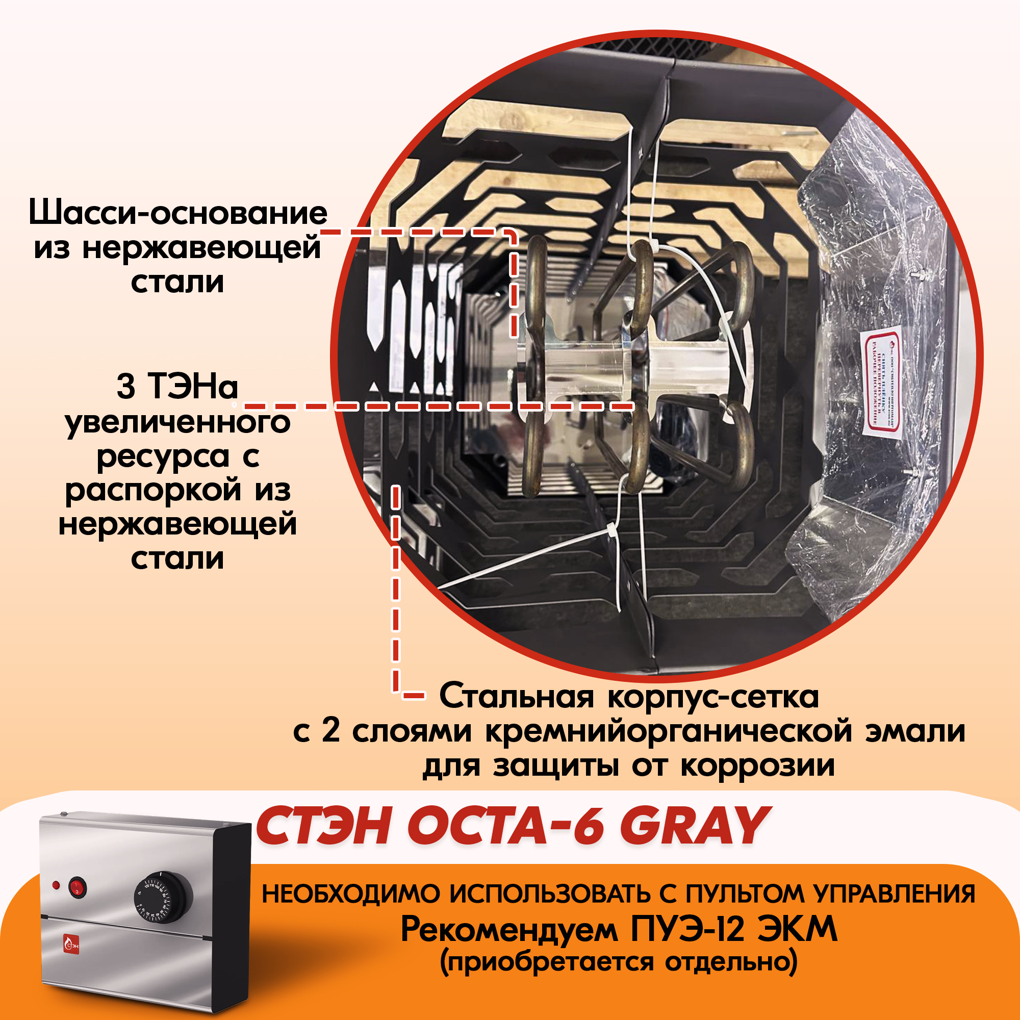 Электрическая каменка СТЭН ЭКМ 6 Octa gray в Уфе | Доставка по России