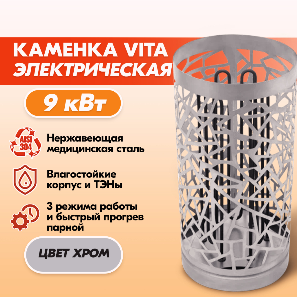 Электрокаменка VITA 9 кВт нерж. в Уфе | Доставка по России