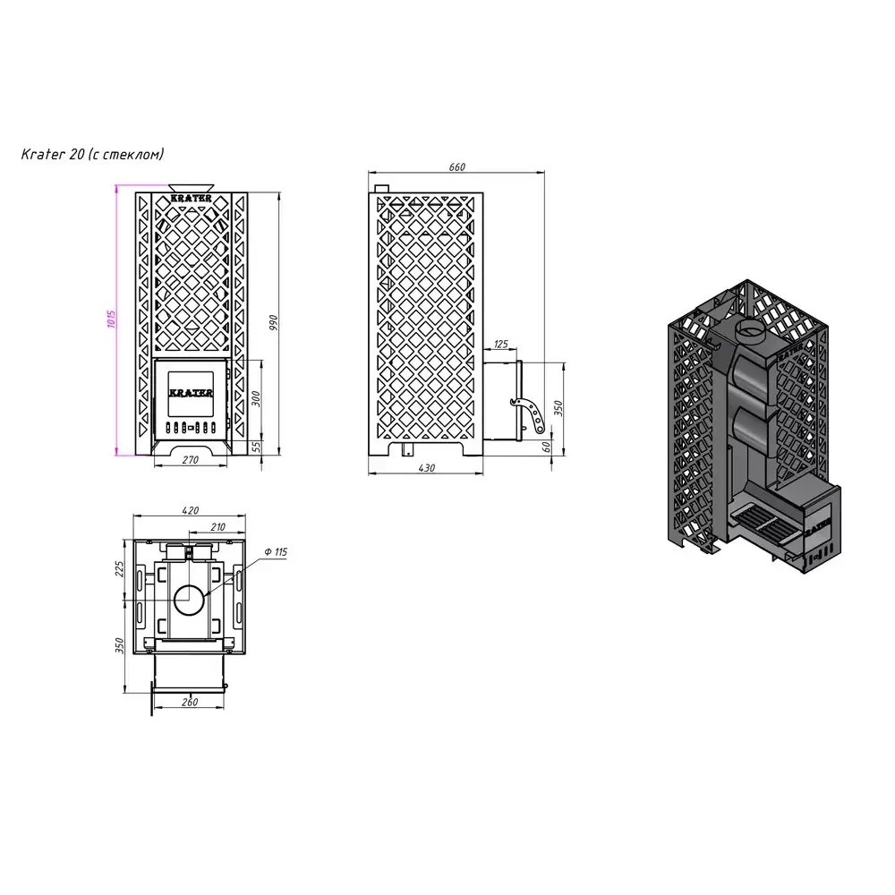 Печь для бани "Кратер 20С" - это высококачественная банная печь, которая станет незаменимым помощником в вашей сауне или бане.
