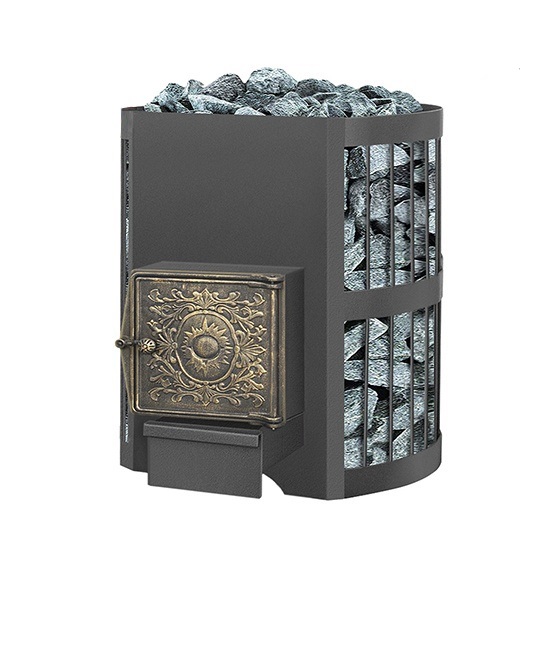 Банная печь Скиф Ч укомплектована топочной глухой чугунной дверцей и имеет конвекционно-вентилируемый кожух (сетка), который изготовлен из калиброванного прута диаметром 6 мм. Дровяная печь Везувий Скиф 12 Ч рассчитана на объем парильного помещения 6-14 м3. В конструкции данной печи не предусмотрен топочный тоннель, что позволяет топить её прямо из парильного помещения.