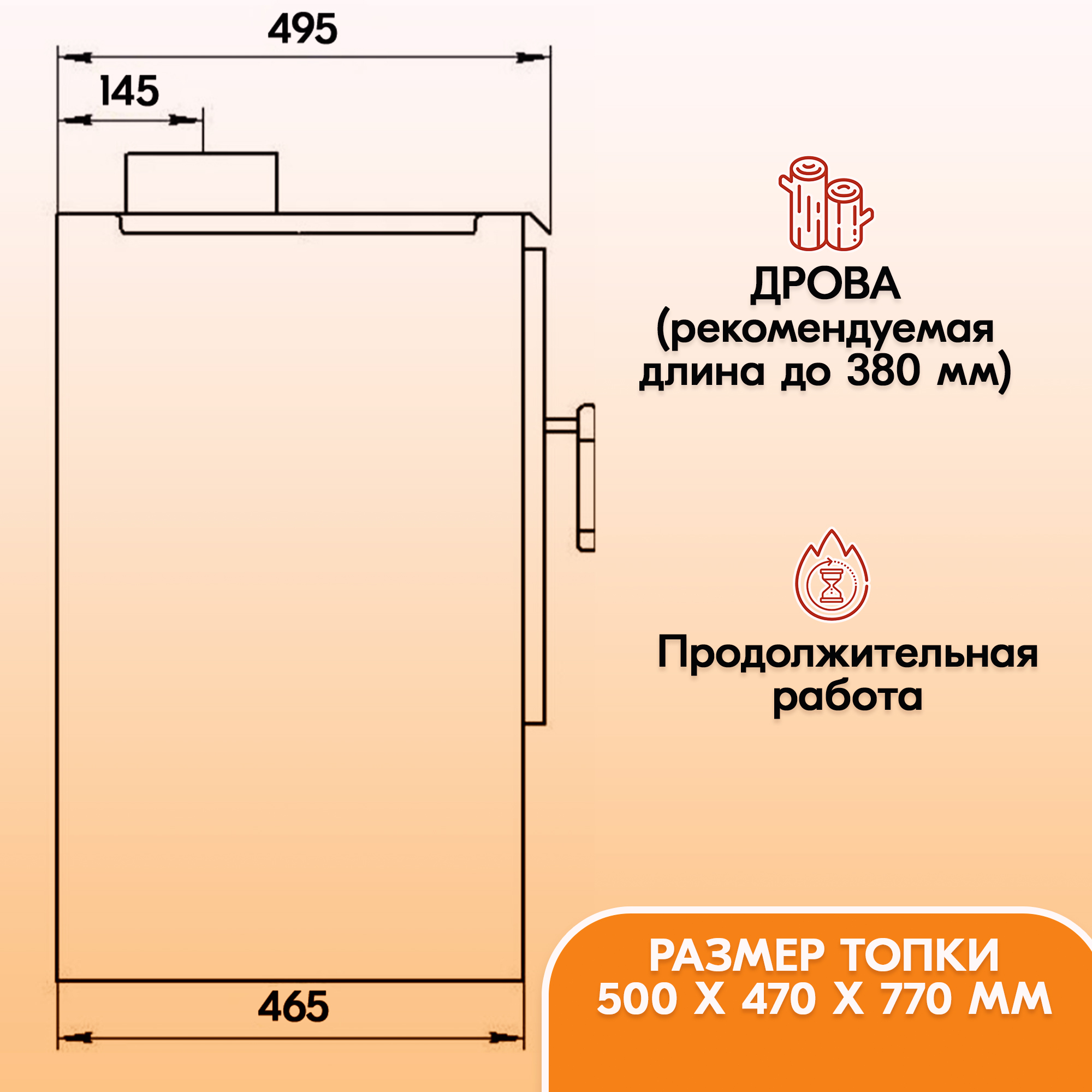 А если по-простому, в металлическую печь достаточно заложить дрова длиной до 38 см 1-2 раза в сутки, и можно забыть о холоде за окном.