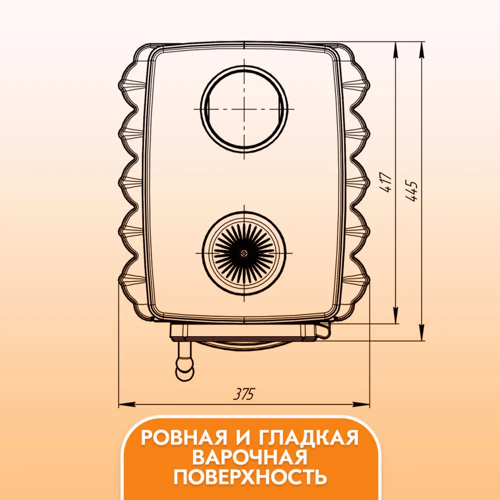В конструкции дровяной печи «Бахтинка» предусмотрена варочная панель, на которой можно вскипятить чайник, приготовить или разогреть вашу любимую еду.