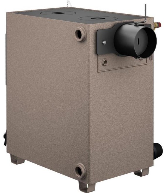 Сварной корпус котла (из стали толщиной 3 мм) имеет рабочее давление в системе отопления - 3 атм.