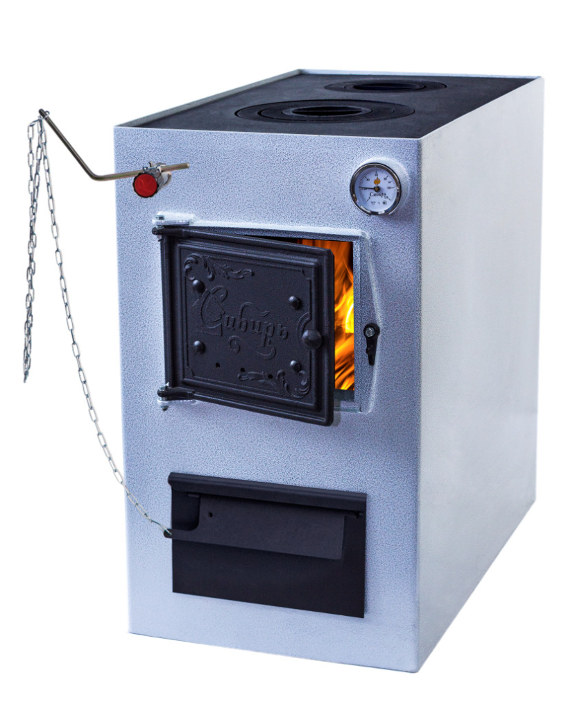 Котел водяного отопления "Сибирь КВО" 20 кВт - это самый мощный котел в отопительной линейке КВО.  Данный котел имеет компактные габариты, универсальное расположение элементов подключения, глубокую и емкую топочную камеру, позволяющую использовать длинные дрова при розжиге. Котел "Сибирь КВО" 20 кВт также как и другие котлы серии КВО оснащен варочной плитой, изготовленной из стали, толщиной 12 мм (запатентованной технологией завода "НМК"). На данный котел существует возможность установки автоматического регулятора тяги подачи воздуха. Отличительной особенностью данного котла является топочная дверца, изготовленная из чугуна с фирменным брендированным рисунком "Сибирь". С внутренней стороны дверцы установлен отбойник пламени из стали, защищающий основную дверцу от избыточной термической нагрузки и деформации. В процессе эксплуатации дверца плотно закрывается и открывается, не провисает и не ржавеет. Это дает дополнительную эстетику, необходимую в современном загородном доме.  Котел водяного отопления "Сибирь КВО" 20 функционирует на твердом топливе: дрова, прессованные брикеты, уголь и способен справиться с отоплением дома площадью до 200 м2, оборудованного системой водяного отопления с естественной или принудительной циркуляцией. Рабочее давление, предусмотренное для оптимального функционирования котла "Сибирь КВО" 20 кВт составляет не более 1 Бар.