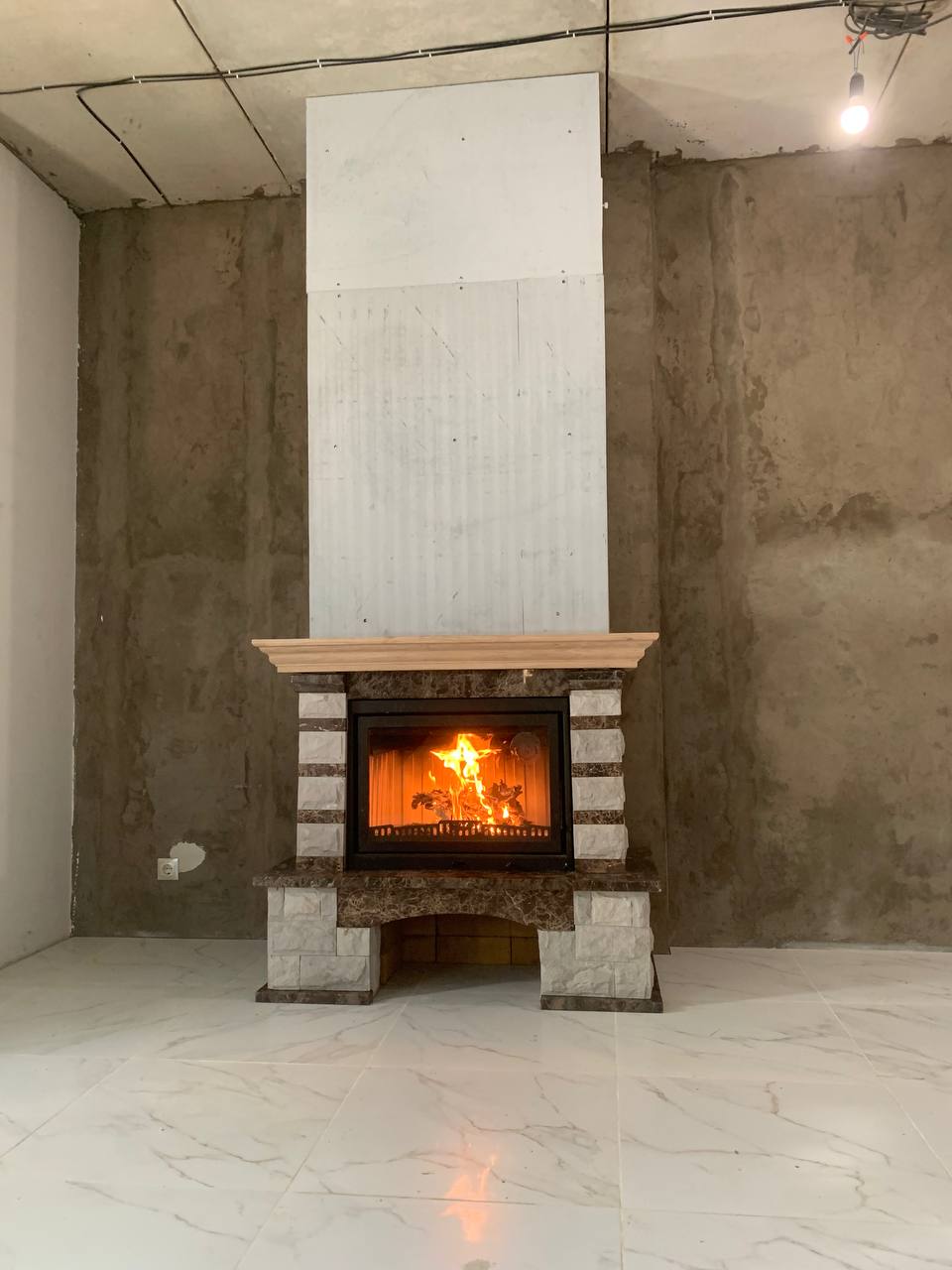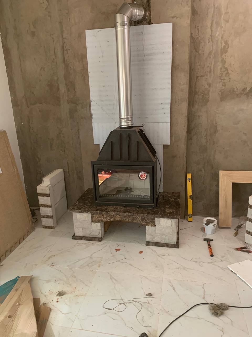 Установка Каминной топки, облицовки и монтаж дымохода через стену