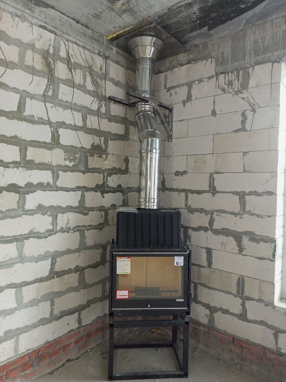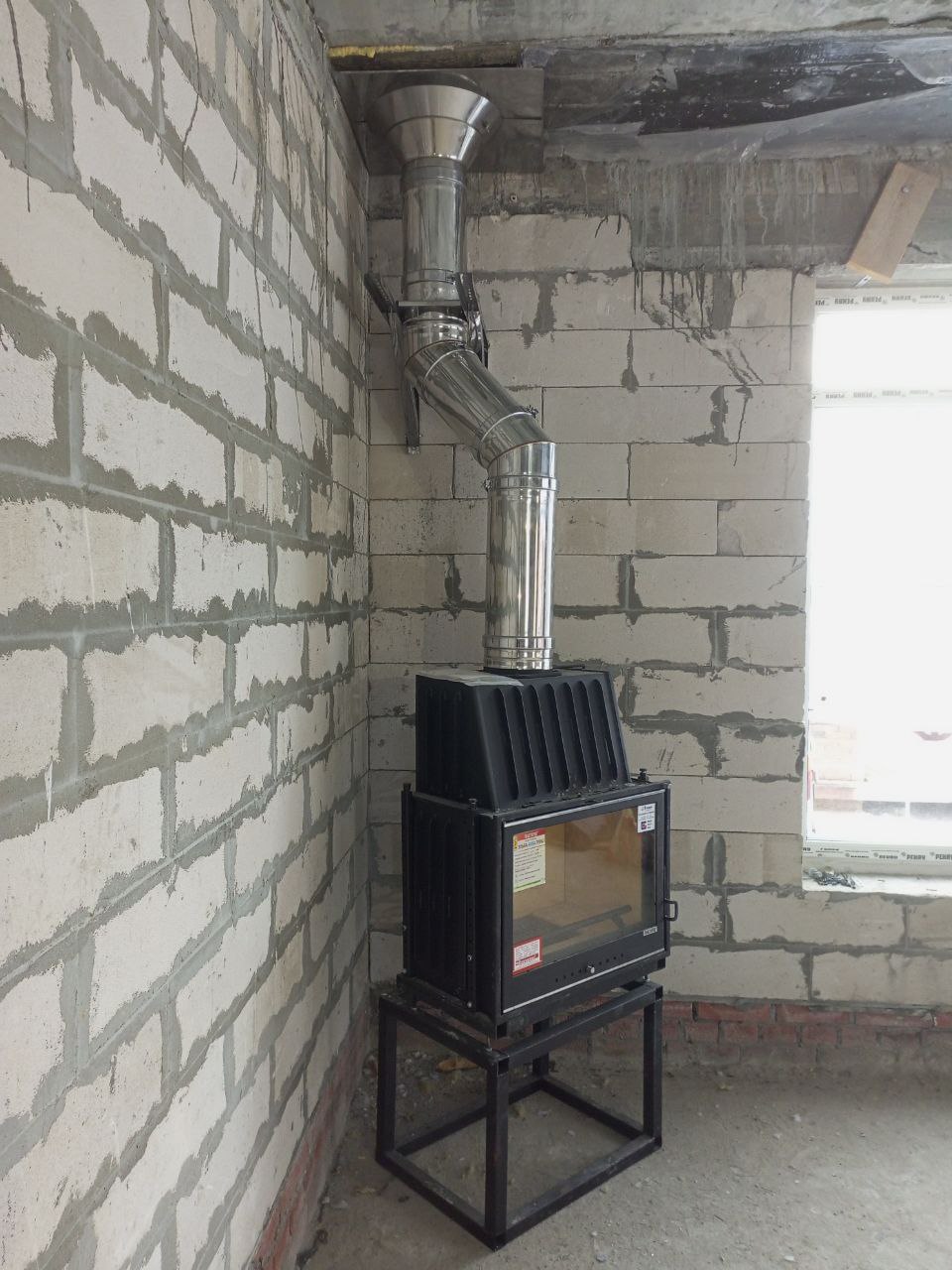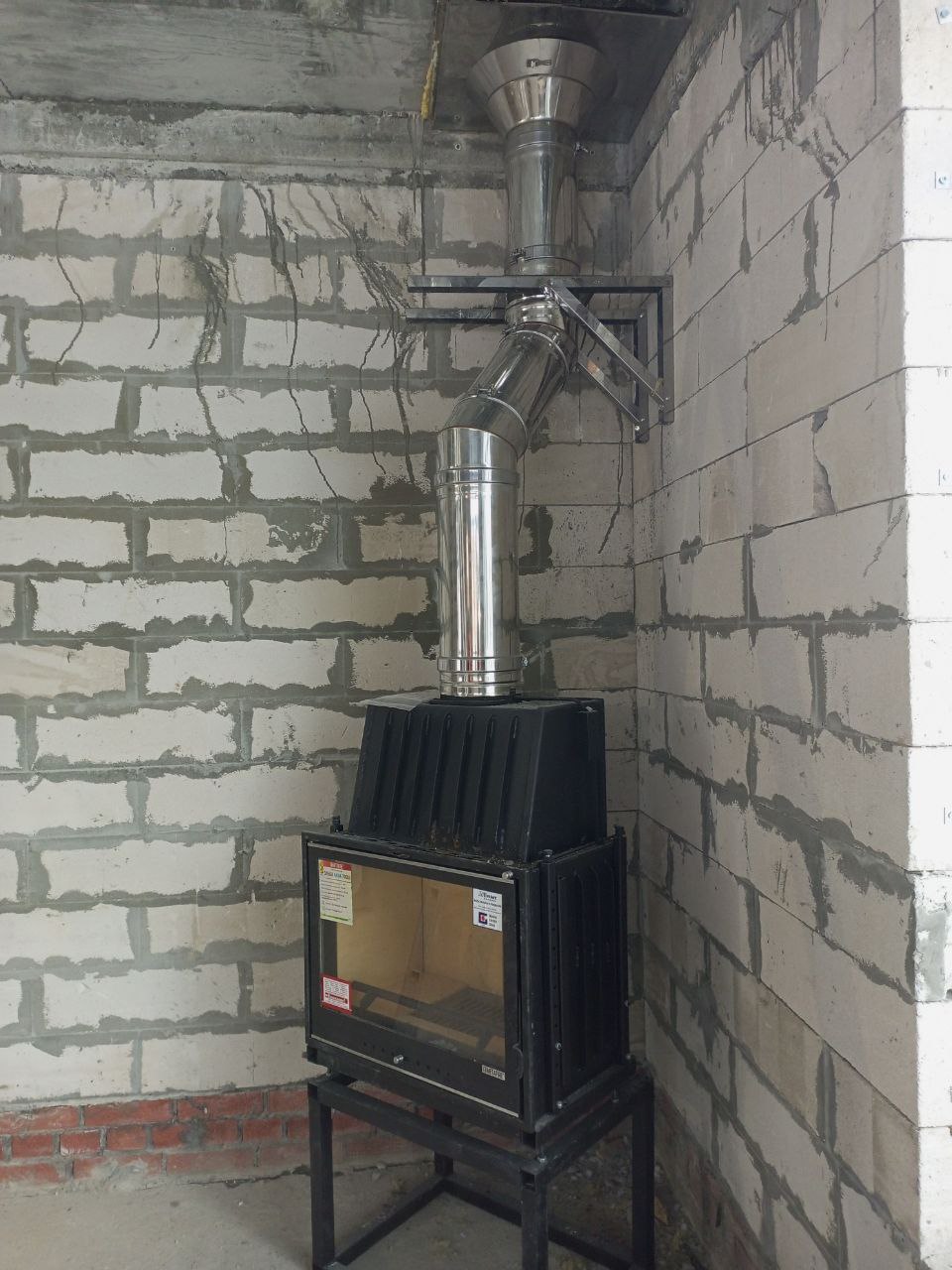 Установка каминой топки и монтаж дымохода Теплов и Сухов под отделку